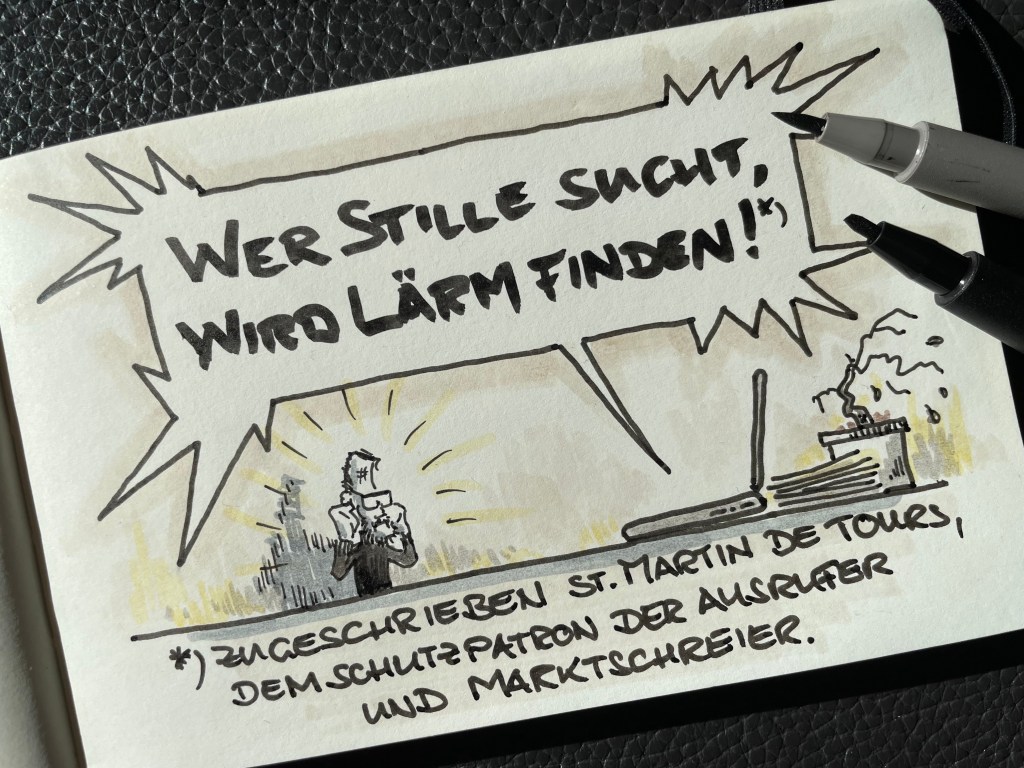 Das hätte ich verdient, nicht nur im Anblick des selbstsicheren Störenfrieds. Schon meine Anfahrt zum weltweit größten Branchentreffen Deutschlands, zu dem alle weltweit führendsten Content-Marketing-Agenturen Deutschlands zusammenkamen – allein schon die Anfahrt war, als hätte ich eine kontinuierliche Kakophonie statt einer zügigen Zugfahrt gebucht.